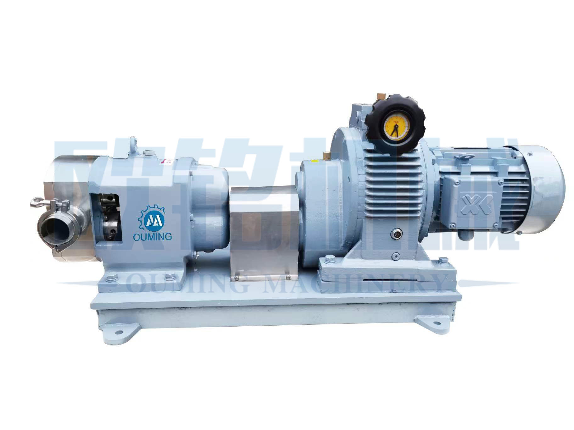該產(chǎn)品借助于工作腔里的多個固定容積輸送單位的周期性轉(zhuǎn)化來達(dá)到輸送流體的目的。原動機(jī)的機(jī)械能通過泵直接轉(zhuǎn)化為輸送流體的壓力能,泵的流量只取決于工作腔容積變化值以及其在單位時間內(nèi)的變化頻率,而(理論上)與排出壓力無關(guān);轉(zhuǎn)子泵依靠兩個同步反向轉(zhuǎn)動的轉(zhuǎn)子(轉(zhuǎn)子葉數(shù)為2-8)在旋轉(zhuǎn)過程中于進(jìn)料口處產(chǎn)生吸力(真空度),兩轉(zhuǎn)子將轉(zhuǎn)子室分隔成幾個小空間,在傳動軸的帶動下進(jìn)行反方向旋轉(zhuǎn),介質(zhì)即被輸送至出料口,從而產(chǎn)生了較高的排放壓力,如此往復(fù)循環(huán),特別適合中高粘度介質(zhì)的輸送。